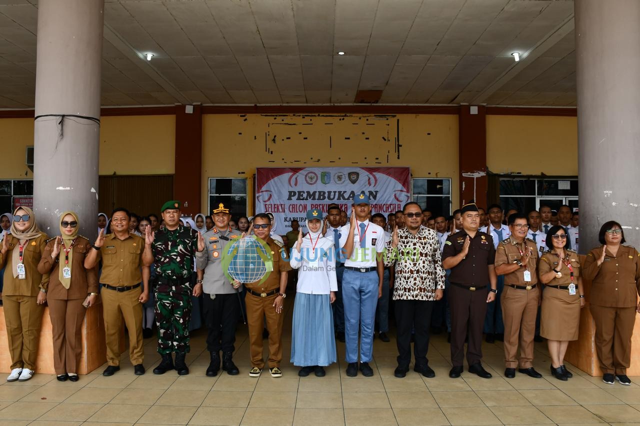 SINTANG, ujungjemari.id- Bupati Sintang melalui Staf Ahli Bupati Bidang Perekonomian, Pembangunan, dan Keuangan, Helmi, membuka kegiatan seleksi calon Pasukan Pengibar Bendera Pusaka (Paskibraka) tingkat Kabupaten Sintang tahun 2026. Kegiatan berlangsung di Gedung Indoor Apang Semangai, Senin, 6 April 2026.