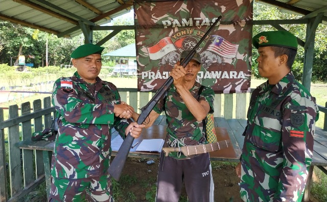 Penyerahan senpi rakitan ini merupakan hasil dari upaya Satgas Pamtas yang tidak pernah lelah untuk mensosialisasikan tentang undang-undang mengenai kepemilikan senjata api illegal kepada warga perbatasan. Jadi setiap Satgas Pamtas melaksanakan anjangsana kerumah warga mereka selalu mensosialisasikan hal tersebut, terang Kapendam XII/Tpr, Kolonel Inf Aulia Fahmi Dalimunthe, S.Sos.
