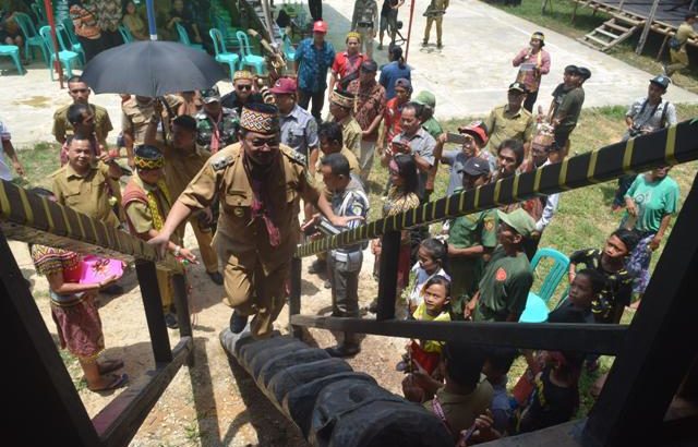 www.ujungjemari.com, SINTANG- Wakil Bupati Sintang, Drs. Askiman,MM meresmikan rumah Betang adat ‘Patih Angga’ di Desa Merimpit Baru Kecamatan Dedai, Senin (08/04/2019). Cuaca terik tak menyurutkan smeangat masyarakat Merempit dan desa sekitarnya untuk ber’gawai’ di betang yang baru. Betang (Rumah Panjang) merupakan rumah tradisional dan khas masyarakat Suku Dayak. Betang adat Patih Angga berukuran 9 x 30 meter persegi. Betang ini berada satu kompleks dengan kantor desa.