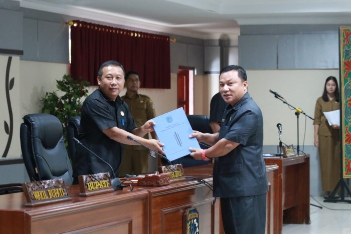 SINTANG, KALBAR- Ketua Badan Pembentukan Peraturan Daerah (Bapemperda) Dewan Perwakilan Rakyat Daerah (DPRD) Kabupaten Sintang, Welbertus menyampaikan Jawaban/Tanggapan Pimpinan Bapemperda atas Pandangan Umum Fraksi-Fraksi DPRD Kabupaten Sintang terhadap 3 (Tiga) Raperda Inisiatif DPRD Kabupaten Sintang.