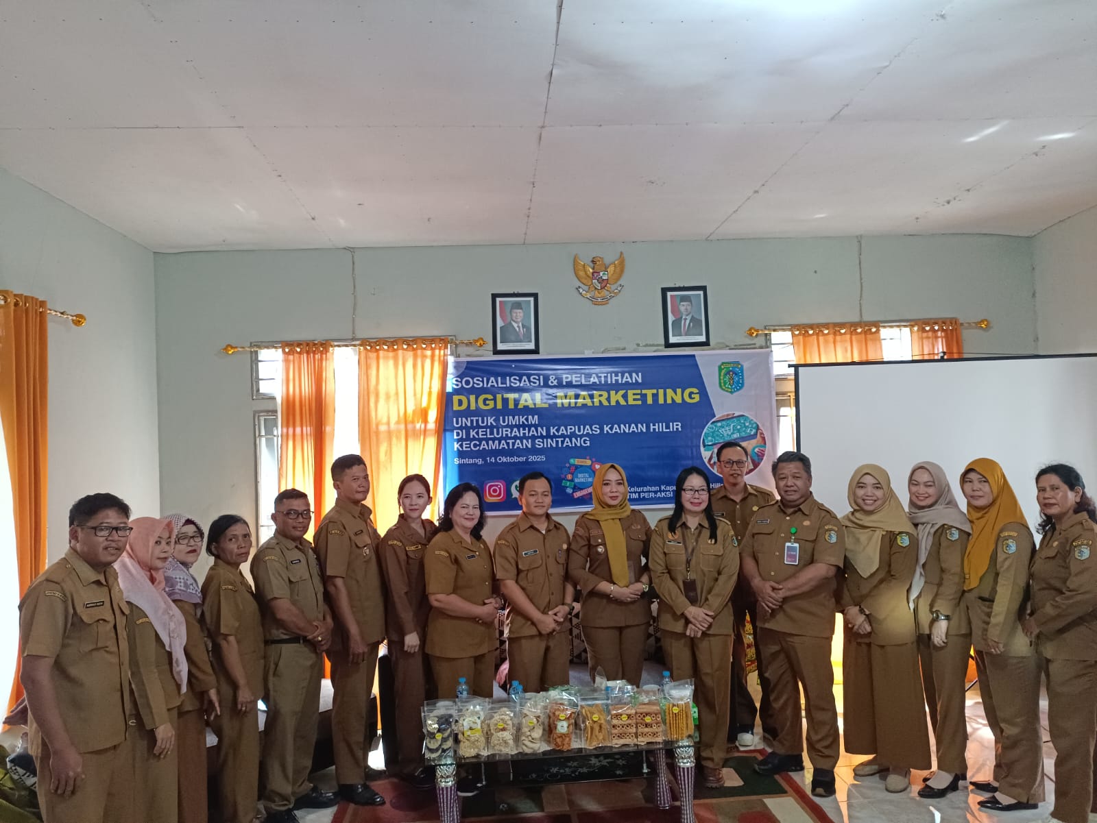 SINTANG, ujungjemari.id- Kelurahan Kapuas Kanan Hilir, Kecamatan Sintang, menggelar Sosialisasi dan Pelatihan Digital Marketing bagi pelaku Usaha Mikro, Kecil, dan Menengah (UMKM) pada Selasa, 14 Oktober 2025 di Aula Kelurahan Kapuas Kanan Hilir.
