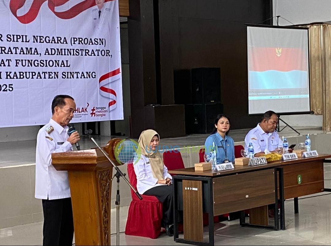 SINTANG, ujungjemari.id- Pemerintah Kabupaten Sintang melaksanakan kegiatan Profiling Kompetensi Aparatur Sipil Negara (ASN) sebagai langkah untuk menerapkan sistem merit di lingkungan pemerintah daerah. Kegiatan ini dilaksanakan pada Rabu, 19 November 2025, di Aula SMK Negeri 1 Sintang.