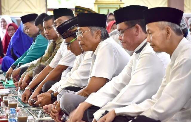 www.ujungjemari.com, SINTANG- Panitia Bersama Syiar Ramadhan dan Idul Fitri 1440 Hijriah yang merupakan gabungan dari Ormas Islam Kabupaten Sintang menggelar kegiatan Buka Puasa bersama dan silaturahmi Ramadhan 1440 Hijriah yang dihadiri langsung oleh Bupati Sintang, Jarot Winarno dan juga Ketua Majelis Pengurus Wilayah Ikatan Cendikiawan Muslim Indonesia Provinsi Kalimantan Barat, Prof. Dr. H. Thamrin Usman, DEA, serta jajaran forkopimda, pimpinan OPD yang ada dilingkungan Pemerintah Kabupaten Sintang, dan ratusan umat muslim turut hadir dalam kegiatan tersebut, dilaksanakan di Rumah Adat Melayu Tepak Sirih, Jalan Y.C. Oevang Oeray Sintang, pada hari Minggu sore, (19/5/2019).