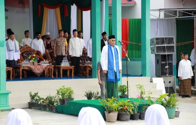 www. Ujungjemari.com, SINTANG. Bupati Sintang, dr. Jarot Winarno, M.Med.PH menjadi inspektur upacara pada kegiatan gebyar Hari Santri di Pondok Pesantren Darul Ma’arif Sintang, bersamaan dengan itu dilangsungkan pula peringatan milad Sekolah Tinggi Ilmu Agama Islam Sintang, di halaman Ponpes Darul Ma’arif Sintang, Sabtu (27/10/2018).